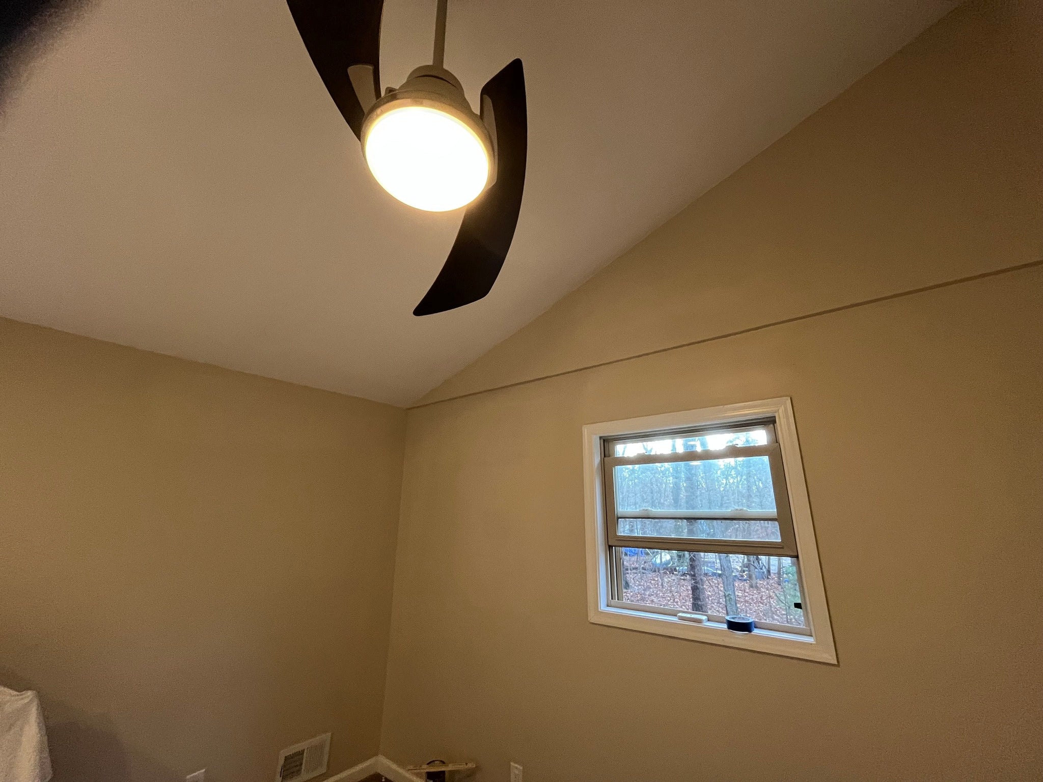 A tree fell on this home and the impact completely destroyed the drywall in this bedroom — cracks, separation, and major movement throughout the walls and ceiling. We were called in to restore the interior and bring the room back to life.